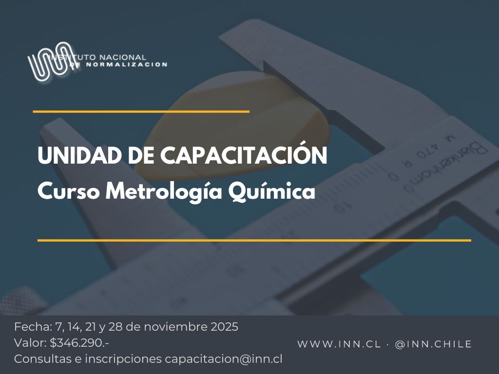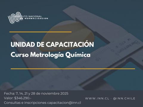 La Unidad de Capacitación del Instituto Nacional de Normalización (INN) te invita a participar en el Curso de Metrología Química, orientado a fortalecer conocimientos y competencias en medición y control de calidad en el ámbito químico
