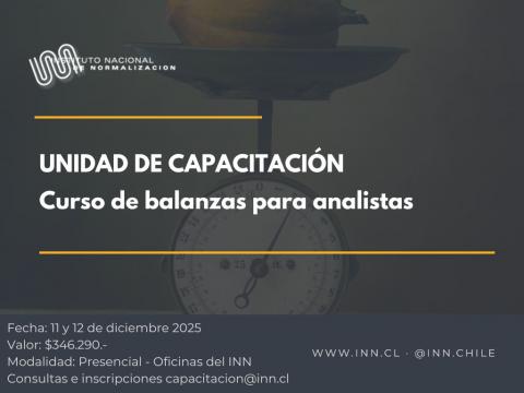 La Unidad de Capacitación del INN te invita a participar en el Curso de Balanzas para Analistas, una instancia clave para fortalecer competencias técnicas en metrología